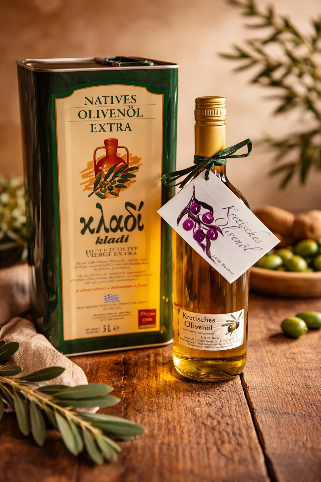 Unser Olivenöl stammt aus Kreta und wird dort von Herrn Bournazakis mit seiner Olivenölfirma Kladi gewonnen. Die Basis bildet die Koroneiki-Olive, eine Sorte mit viel Aroma und mediterranem Profil.